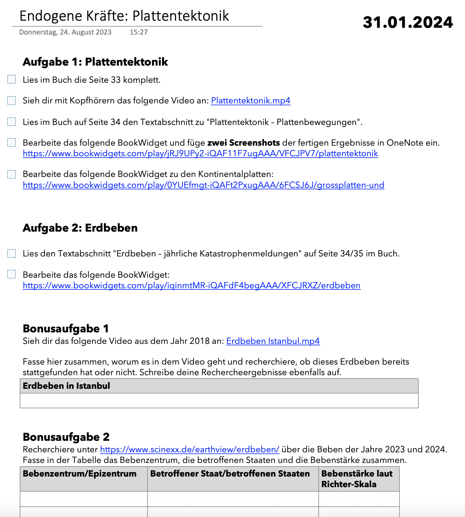 Schularbeitenstoff (4. Klasse)