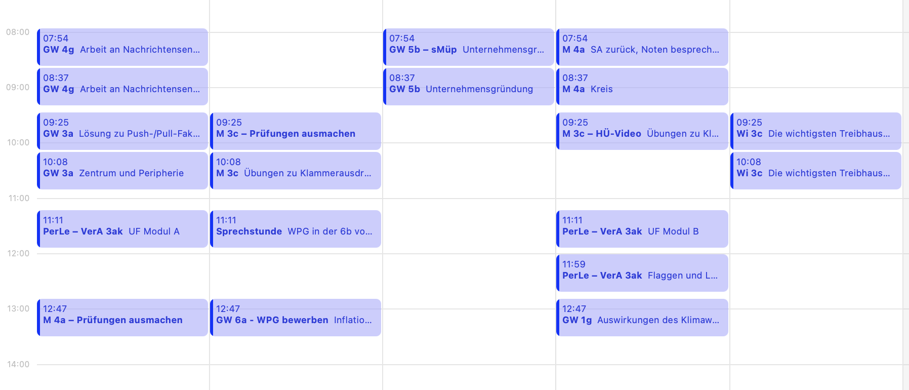 Eigene Wochenplanung im Kalender
