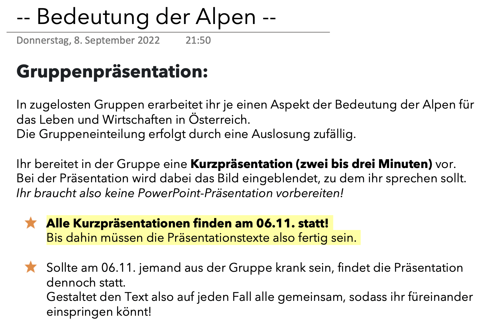 Präsentation 3. Klasse: Bedeutung der Alpen